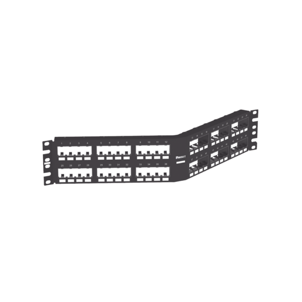 Original price was: $2,857.17.$2,133.35Current price is: $2,133.35.Panel de Parcheo Modular Mini-Com (Sin Conectores), Angulado, Totalmente Blindado, de 48 Puertos, 2UR