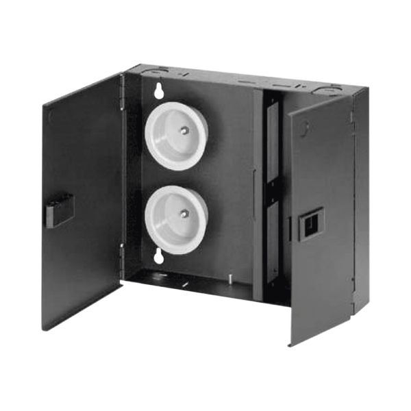 Original price was: $1,443.42.$1,077.75Current price is: $1,077.75.Caja de Conexi?n de Fibra ?ptica, Para Montaje en Pared, Acepta 2 Placas FAP o FMP, Hasta 48 Fibras, Color Negro
