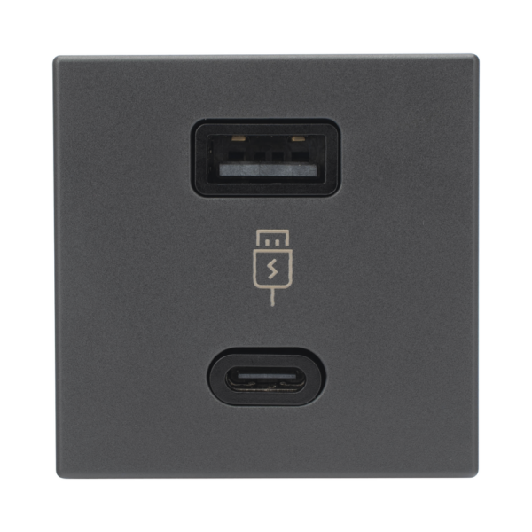 Original price was: $9.27.$6.92Current price is: $6.92.M?dulo Doble USB Tipo A+C / Carga R?pida 30W / Color Grafito / Compatible con Torres y Cajas Simon / Modelo: (K126F/14)