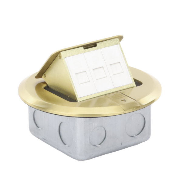 Original price was: $1,820.89.$1,199.64Current price is: $1,199.64.Mini Caja de Piso Redonda para Datos o Conectores Tipo Keystone, Color Bronce (3 Contactos) (11000-12102)