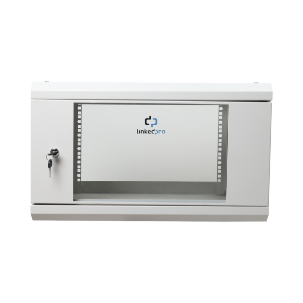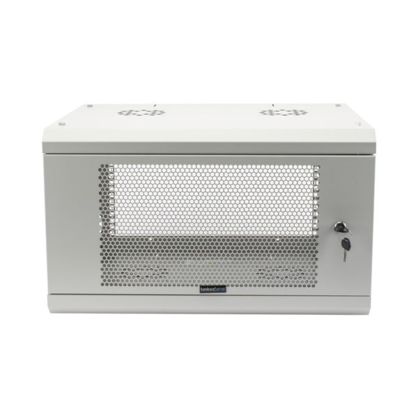 Original price was: $2,612.42.$2,017.87Current price is: $2,017.87.Gabinete de Pared de 6U con Puerta Perforada, 455 mm de Profundidad Total, Rack de 19”, Acero Reforzado Color Gris Mate