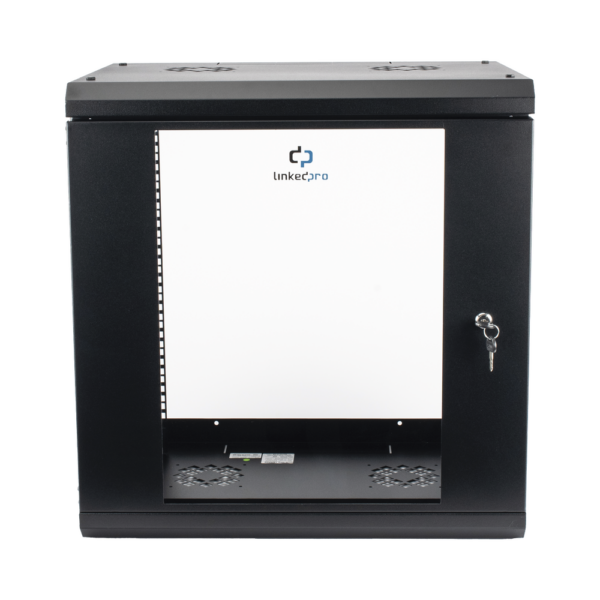 Original price was: $19,411.76.$14,993.91Current price is: $14,993.91.Gabinete de Pared de 12U con Puerta de Cristal Templado, 455 mm de Profundidad, Rack de 19”, Acero Reforzado Color Negro.