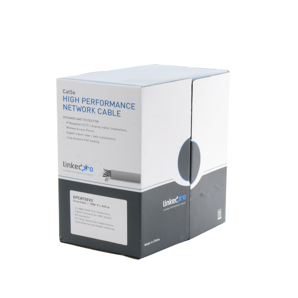 Bobina de Cable de 305 Metros (1000 Pies) Cat5e, Aleaci?n de Cobre y Aluminio (CCA), Color Gris, Uso Interior