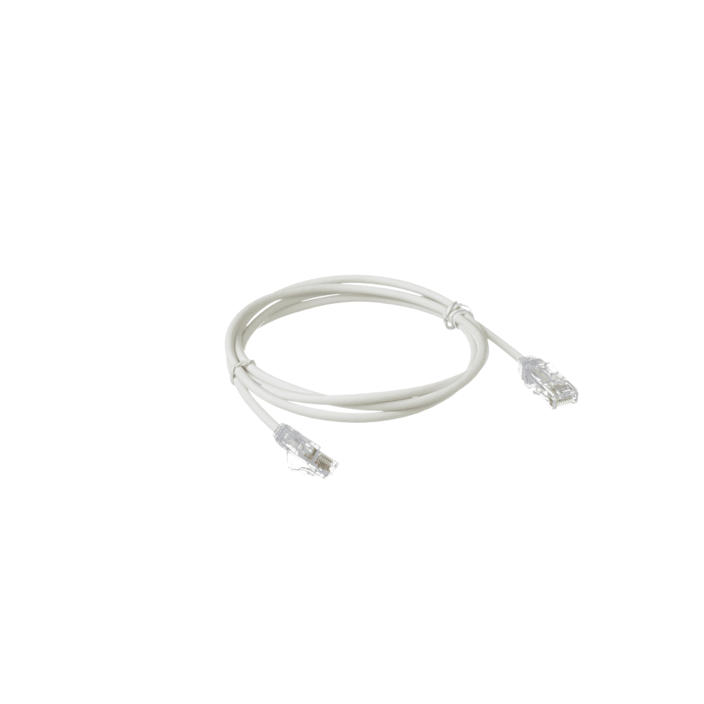 Los cables de parcheo de categoría 6/Clase E, UTP, de diámetro reducido están construidos con cable de cobre de par trenzado sin blindar calibre 28 AWG (CM/LSZH de doble clasificación), con plugs modulares RJ45 de alto rendimiento. Los cables de conexión se ofrecen en múltiples longitudes y colores para flexibilidad de diseño.