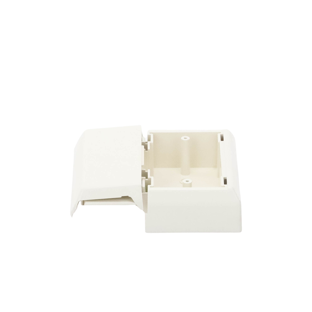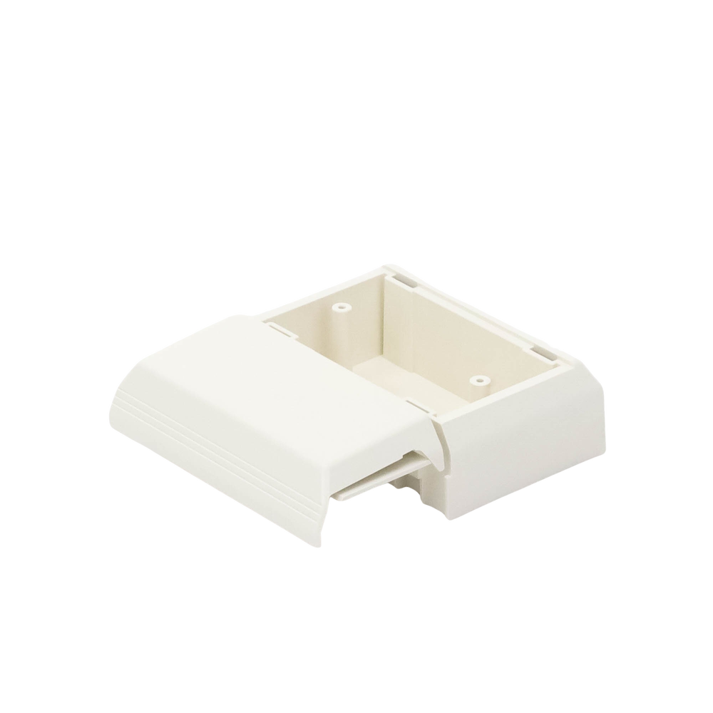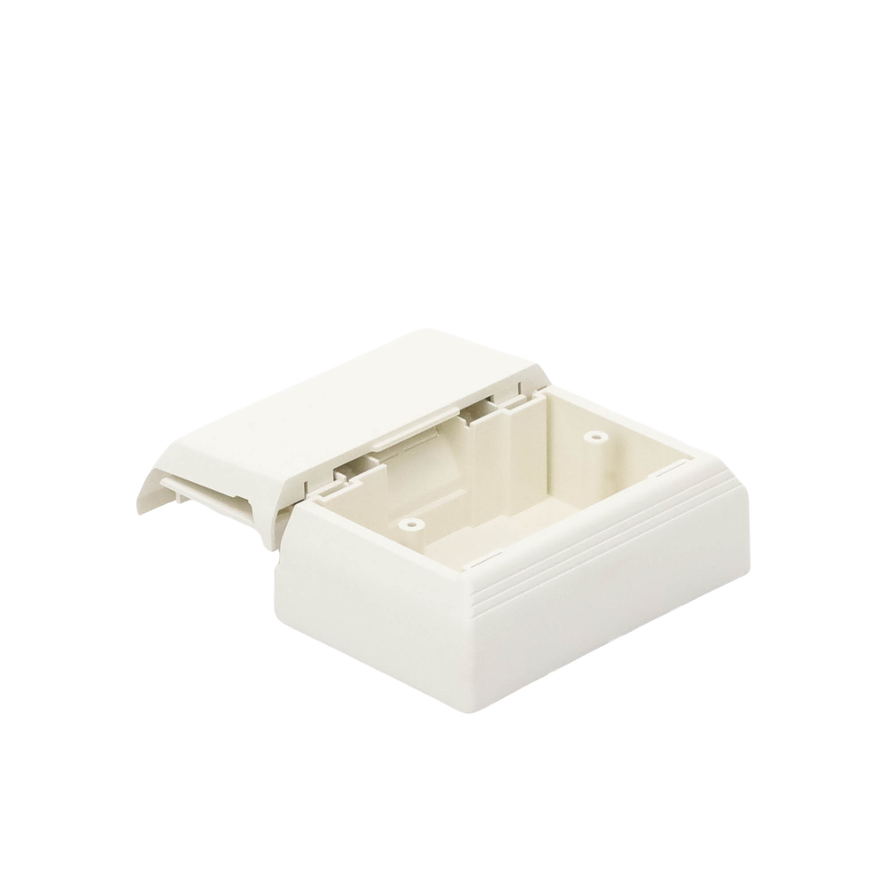 Caja Superficial Con Bisagras de Instalación a Presión, Para Canaletas T45, Material PVC Rígido, Color Blanco Mate