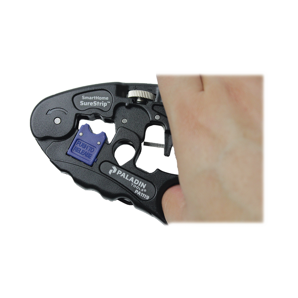 - La cuchilla de extracción ajustable para UTP/STP acomoda diferentes espesores de aislamiento sin dañar los conductores