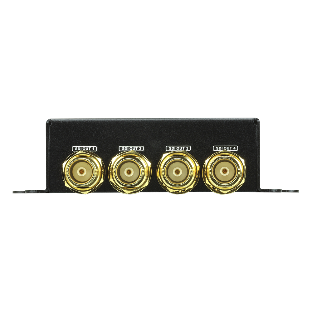 El repartidor de 3G/HD/SD-SDI de 6 puertos VS146 recibe una señal SDI y la retransmite a seis salidas SDI en tiempo real para poder visualizarla en varias pantallas a la vez. Ofrece una función de ecualización automática en función del cable y distribuye la señal SD-SDI a distancias de hasta 300 m. El VS146 es capaz de resincronizar las frecuencias de reloj de las señales SDI para instalaciones en cascada y así alcanzar distancias de transmisión todavía mayores. El sistema es ideal para aplicaciones de vigilancia, estudios de televisión, cine digital o cualquier App donde usted tenga que repartir la señal de una cámara u otro dispositivo con salida 3G/HD/SD-SDI a hasta seis pantallas o procesadores de vídeo SDI compatibles.