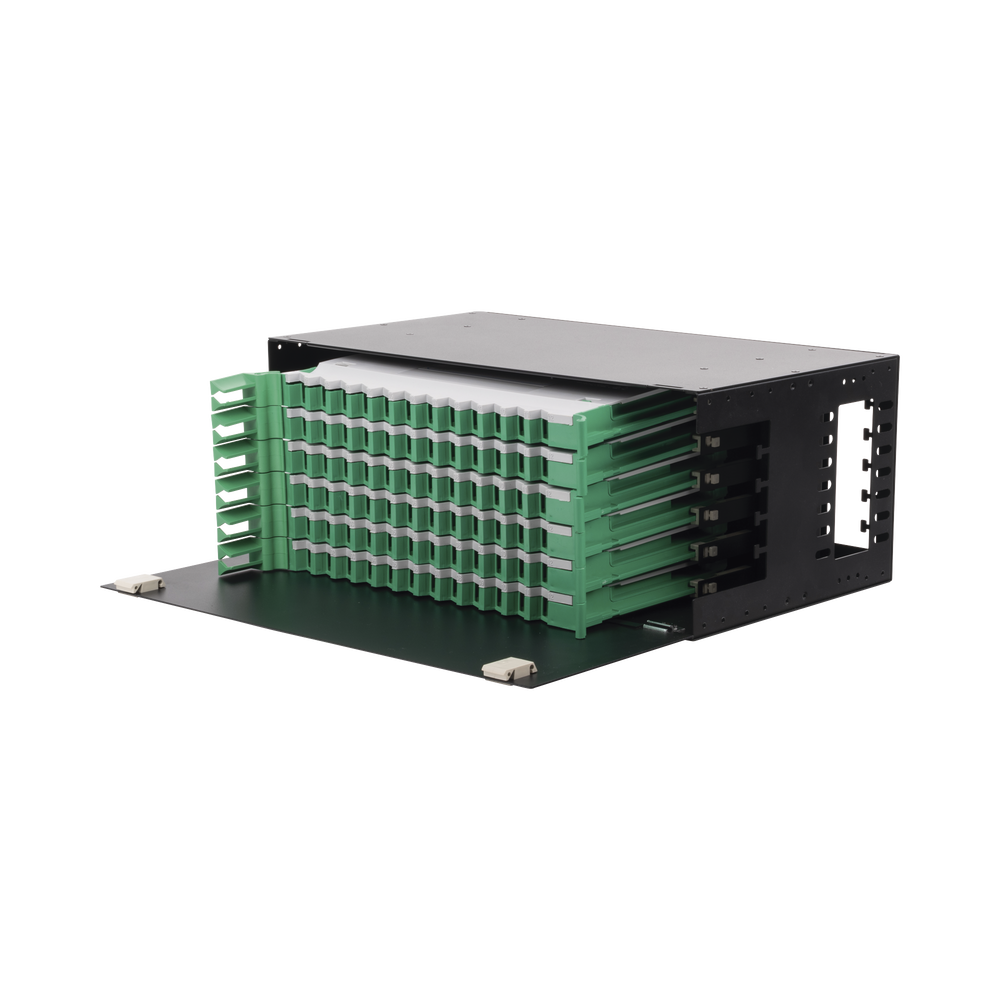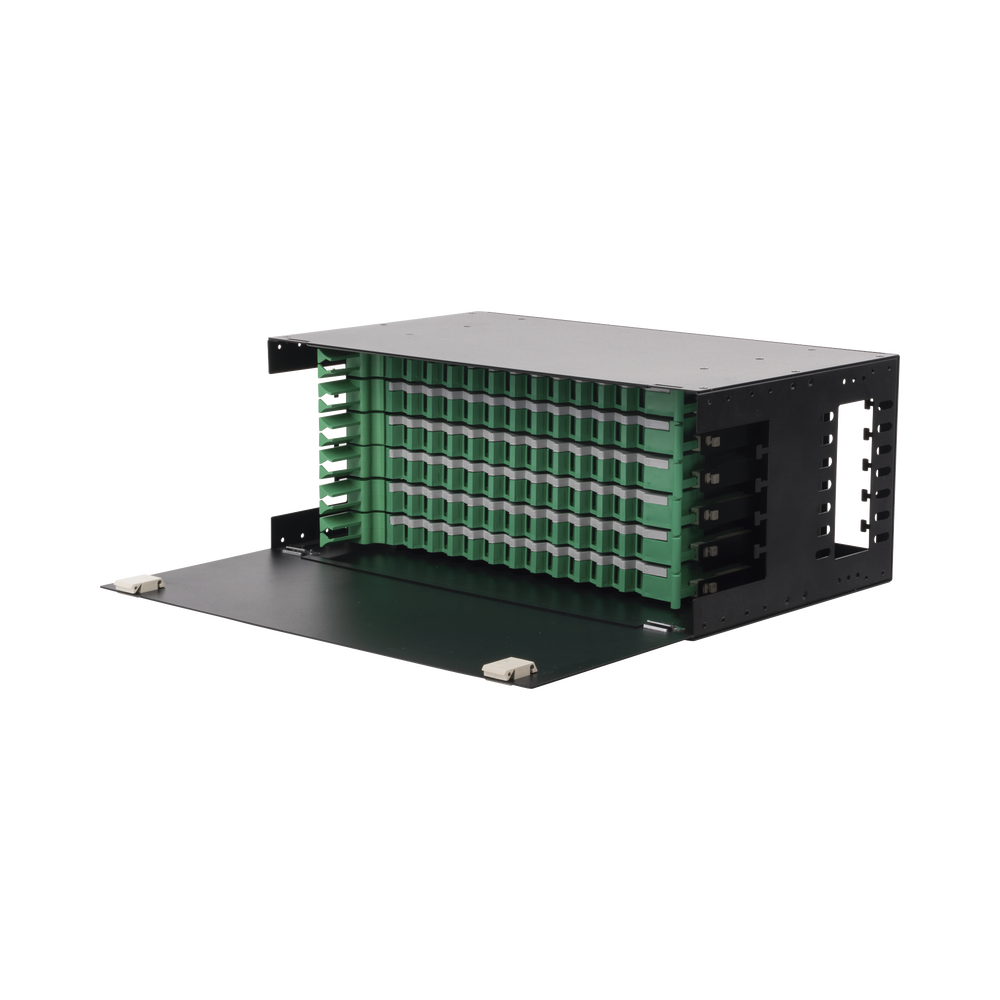 Distribuidor de Fibra ?ptica con Bandejas Deslizables, Vac?o, 19 Pulgadas, Acepta 72 Adaptadores LC Duplex o LC Simplex o 72 SC Simplex, 4U