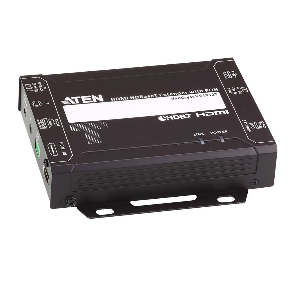 El receptor VE1812R con PoH es compatible con HDMI (3D, Deep Color, 4K) y HDCP. Al transmitir HDMI/4K con un cable Cat 6a o ATEN 2L-2910 Cat 6, la distancia máxima puede alcanzar hasta 100 metros. Con el modo de largo alcance habilitado, el VE1812R puede extender la señal HDMI hasta 150 m a 1080p. El VE1812R es perfecto para aulas digitales, salas de videoconferencia, juegos o cualquier instalación que requiera una calidad de vídeo superior.