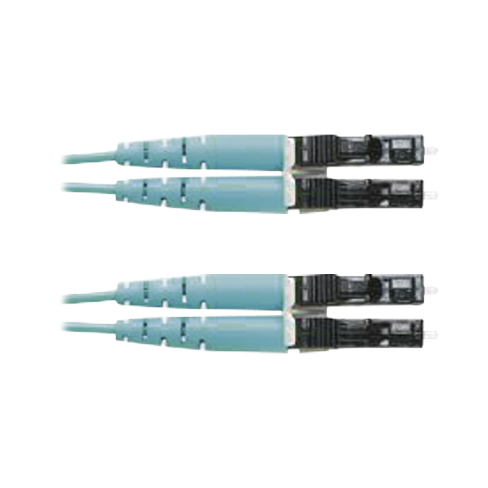 Jumper de Fibra Optica Multimodo 50/125 OM3, LC-LC Duplex, OFNR (Riser), Color Aqua, 4 Metros (13.12 Pies)