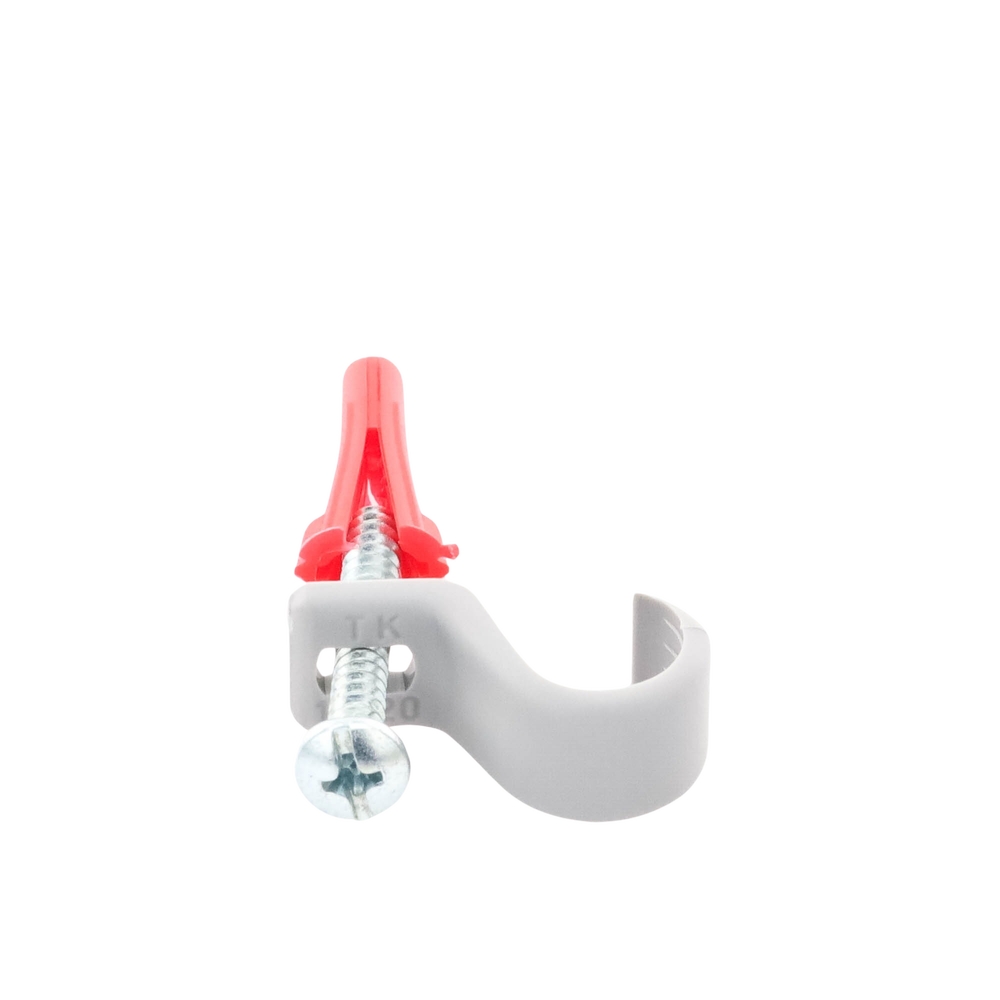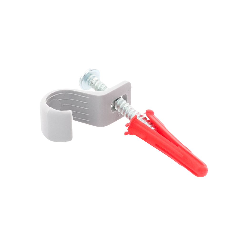 Kit de 8 grapas, 8 taquetes y 8 tornillos para sujetar conductores redondos o tubo en muro (para tubo de 1/2) (2104-07240)