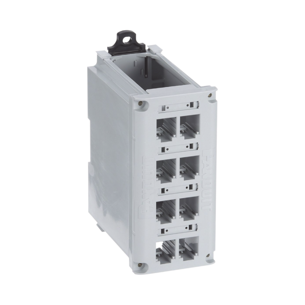 Panel de Parcheo Modular para Cobre, de Instalaci?n en Riel DIN Est?ndar de 35 mm (1.38 pulgadas), 8 Puertos Mini-Com, Color Gris