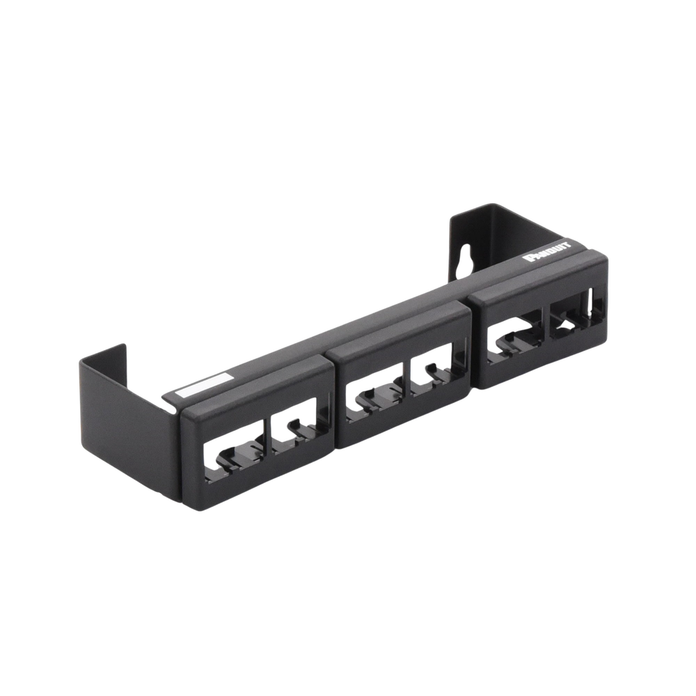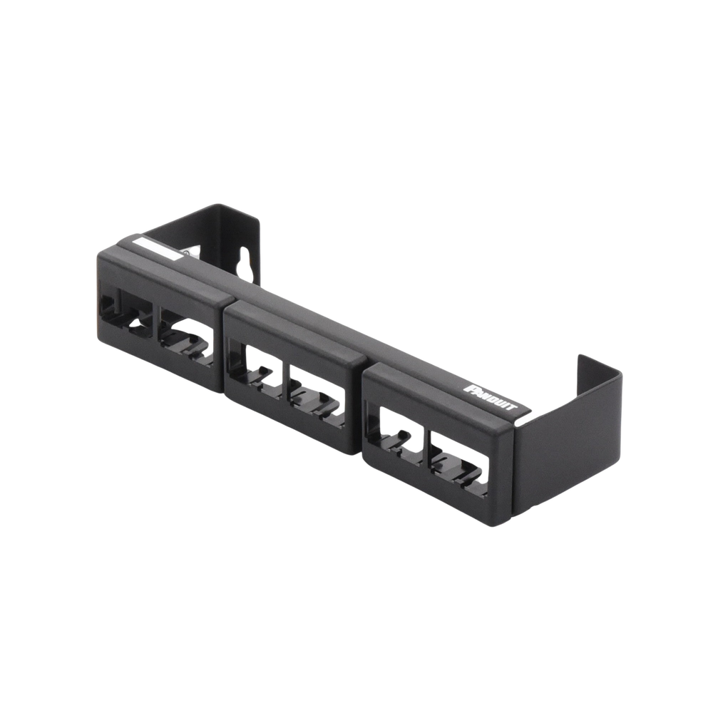 - Acepta módulos Mini-Com® para UTP, fibra óptica y audio / video, que encajan y desconectan para facilitar movimientos, adiciones y cambios