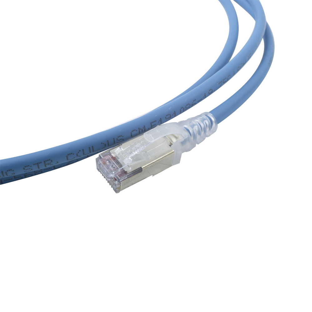 Patch Cord Skinny Cat6A Blindado S/FTP, 2.13 Metros (7 Pies), Di?metro Reducido 28 AWG, Color Azul