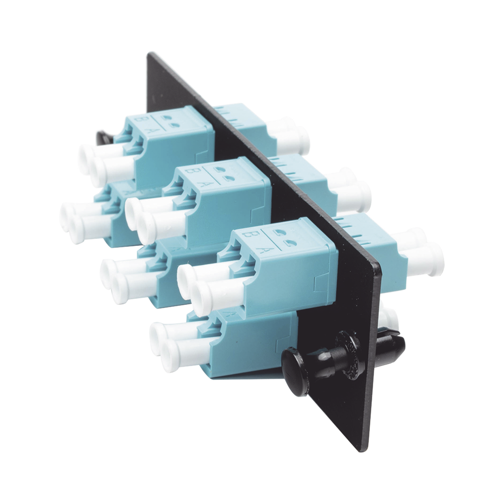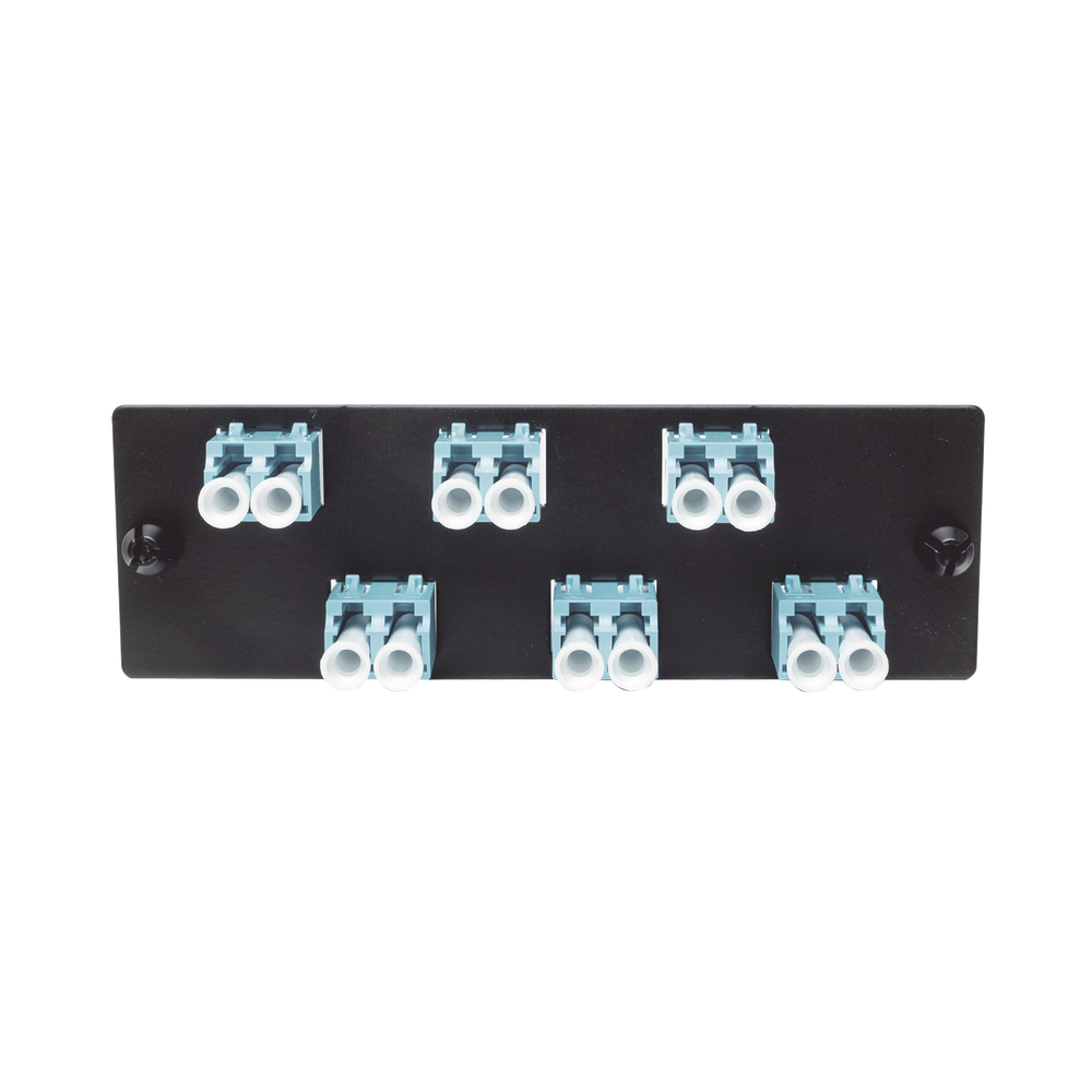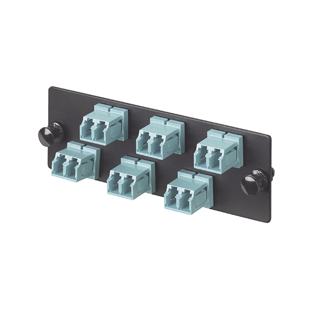 Placa Acopladora de Fibra Optica FAP, Con 6 Conectores LC Duplex (12 Fibras), Para Fibra Multimodo OM3/OM4, Color Aqua