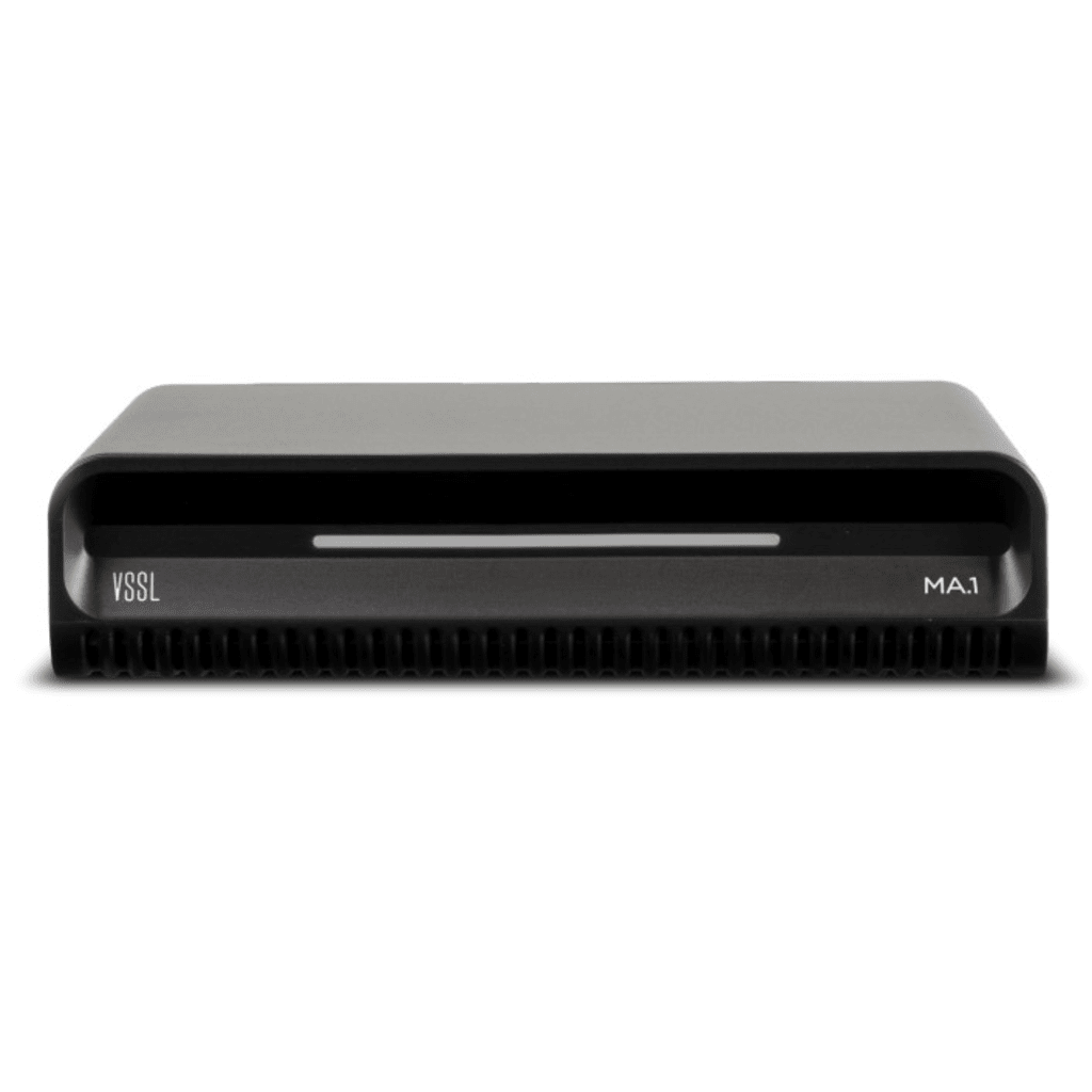 El VSSL MA.1 es un dispositivo de streaming y amplificación de audio de alta potencia para una sola zona con dos canales, alimentado por el ecosistema VSSL. Con tecnología Native Streaming™ que incluye soporte para Apple AirPlay 2, Google Cast, Spotify Connect y DLNA, se integra perfectamente en sistemas de audio existentes permitiendo streaming directo desde aplicaciones de música favoritas de forma rápida y sencilla, sin necesidad de controladores de terceros. El amplificador Clase D ofrece 125W a 8Ω y 200W a 4Ω, con respuesta de frecuencia de 20-20,000 Hz y relación S/N >98 dB. Incluye conectividad WiFi 5 (802.11 a/b/g/n/ac) y Bluetooth 5.3 con LE Audio, además de múltiples entradas y salidas para integración flexible en sistemas de audio profesionales.