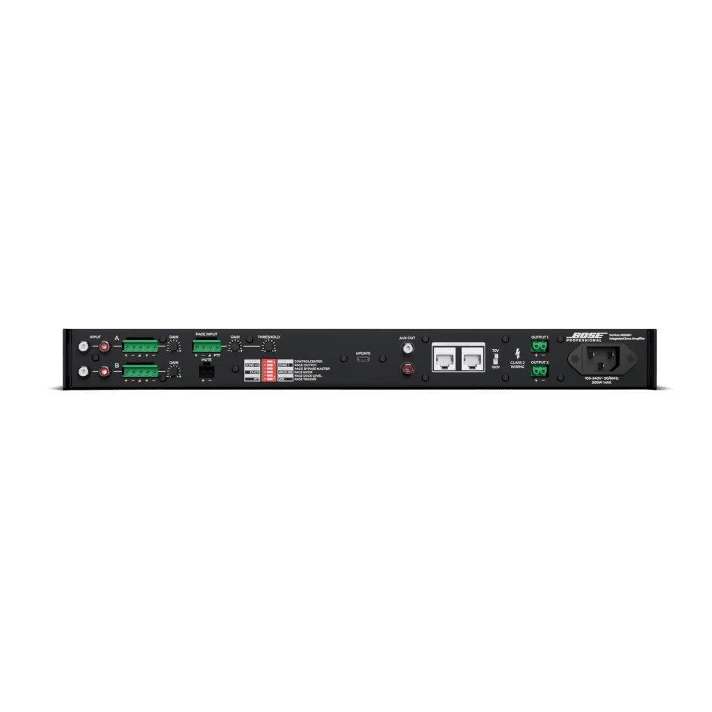 El Veritas 2160BH de Bose Professional es un amplificador mezclador inteligente de alta gama diseñado para sistemas de audio distribuido a gran escala en aplicaciones comerciales. Con una potencia de 2x160W en configuración 70V/100V, este equipo galardonado ofrece música ambiental, primer plano, voceo y multimedia de calidad superior. Incorpora DSP avanzado de 24 bits a 48 kHz, conectividad Bluetooth 5.0, pantalla OLED intuitiva y gestión multizona para aplicaciones complejas en hoteles, centros de conferencias y instalaciones de múltiples salas.