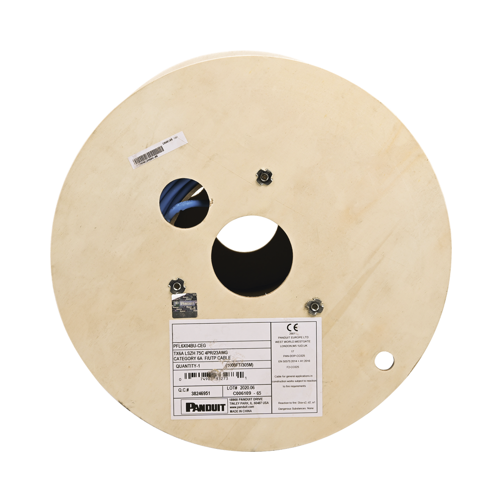 Bobina de Cable Blindado F/UTP de 4 Pares, Cat6A, Soporte de Aplicaciones 10GBase-T, LSZH (Libre de Gases T?xicos), Color Azul, 305 Metros (1000 Pies)