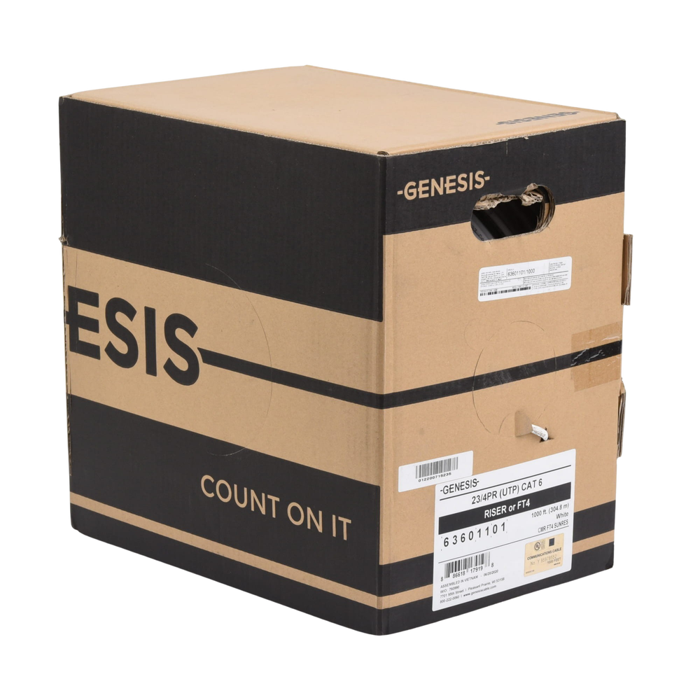 Bobina de Cable de 305 Metros (1000 Pies) UTP Cat6 Riser / Color Blanco / UL, CMR, Probado a 350 Mhz / Para Aplicaciones de CCTV, Redes de Datos, IP Megapixel, Control RS485