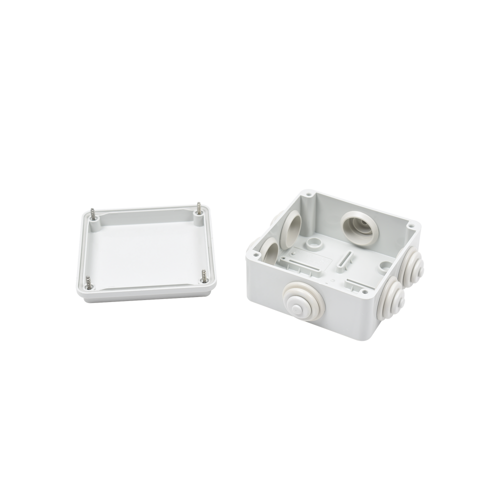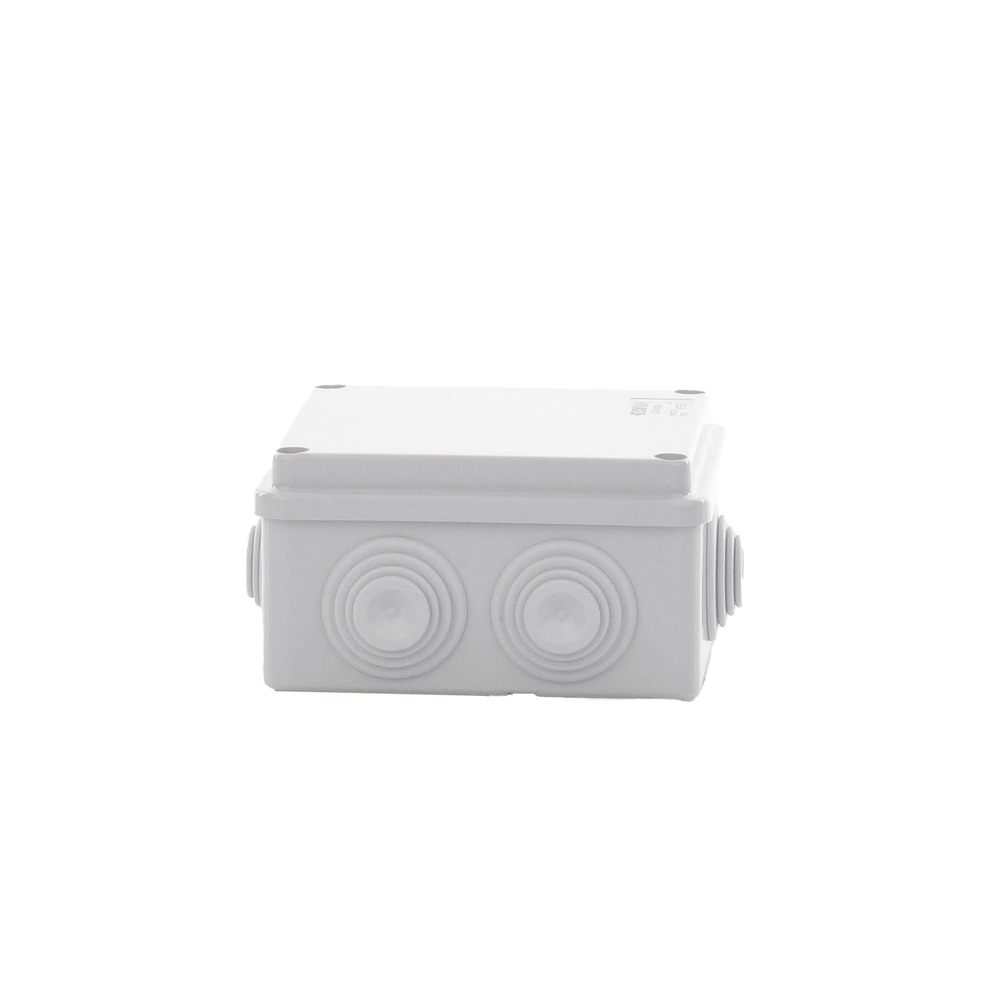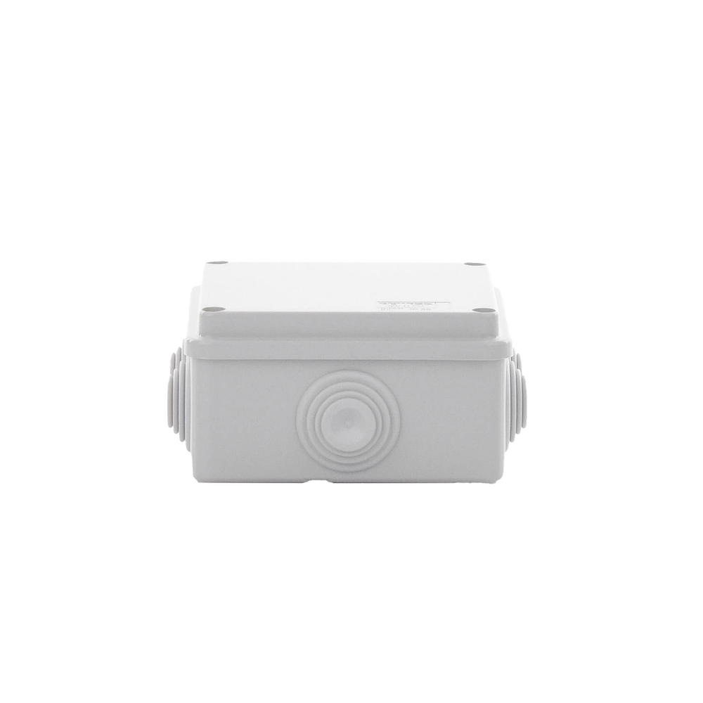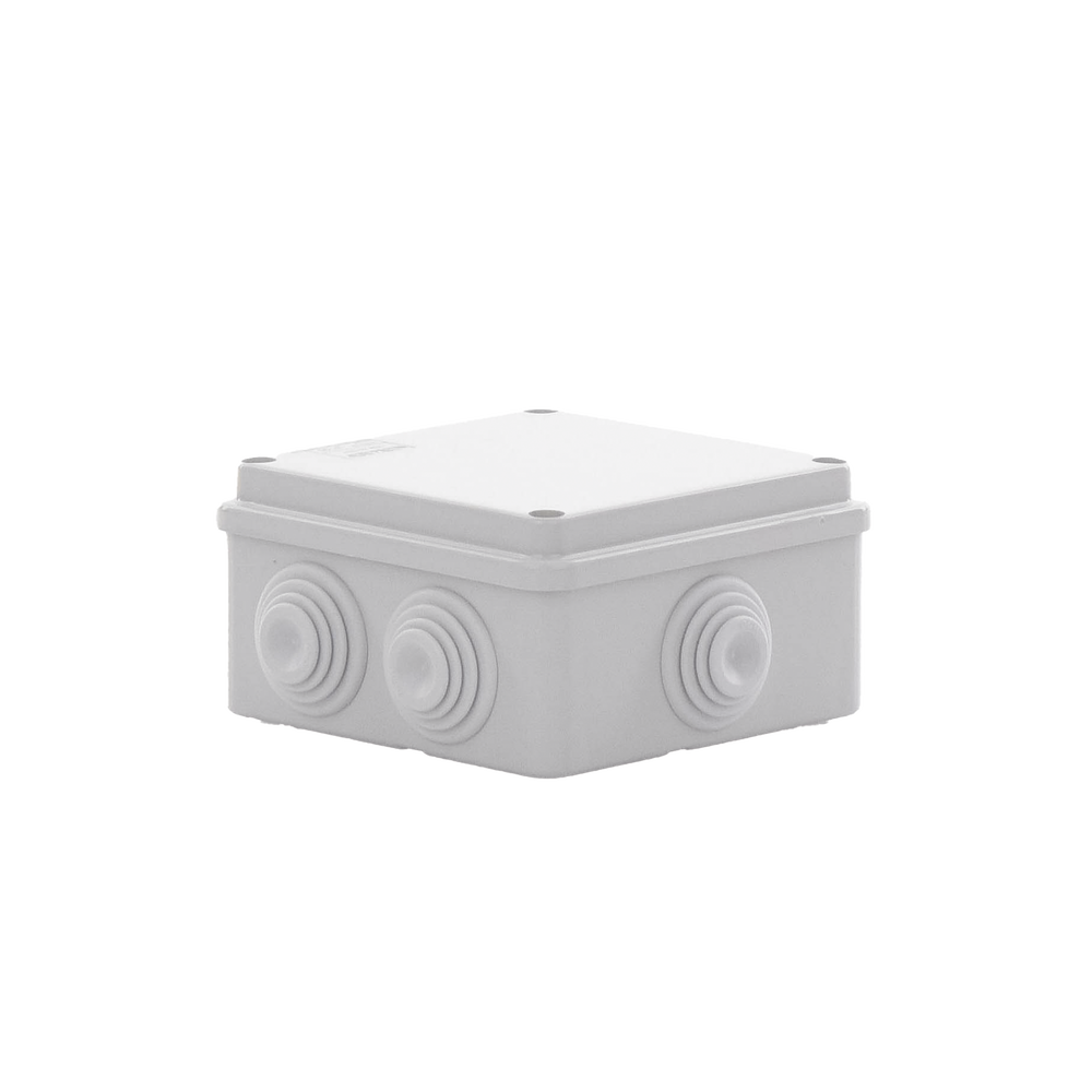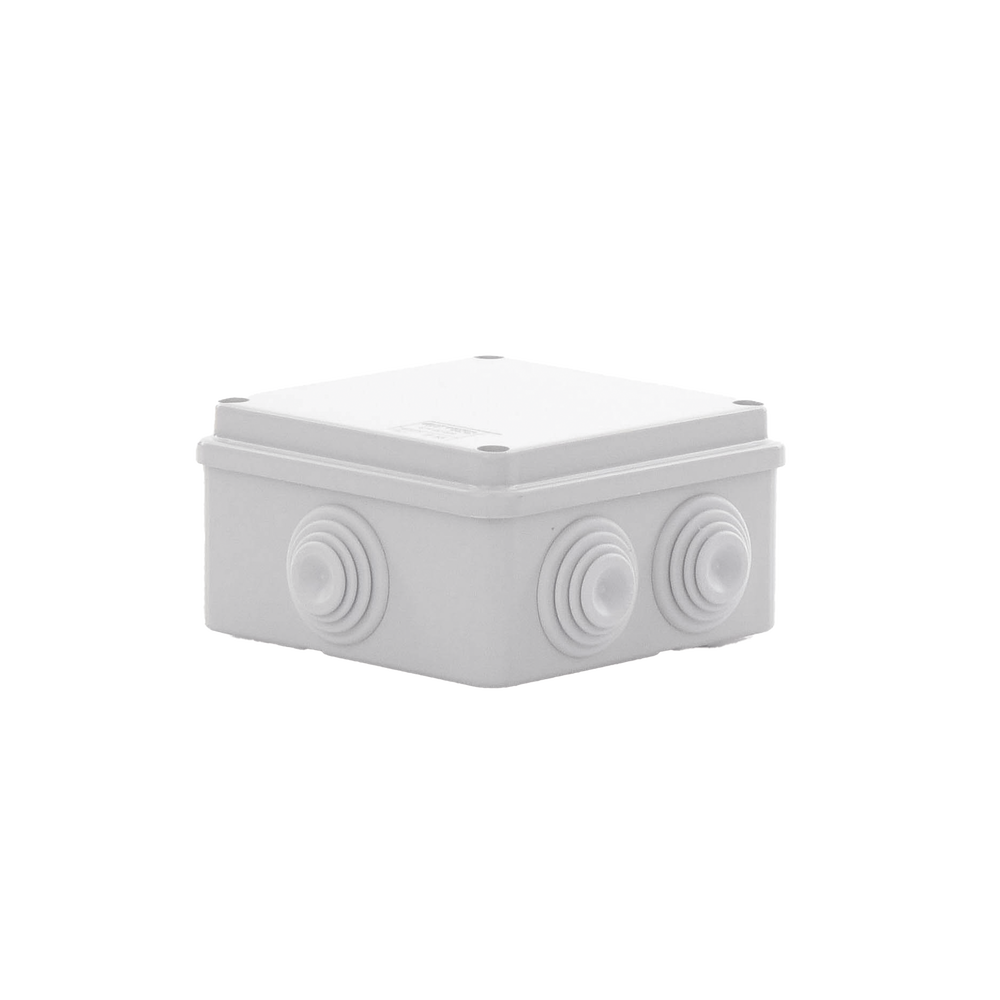 Caja Estanca de PVC Para Derivación y Conexión, 6 Entradas, Tapa Atornillada,100x100x50 mm (Área Interna), Uso Exterior IP55, Material que no Propaga el Fuego y Libre de Hálogenos