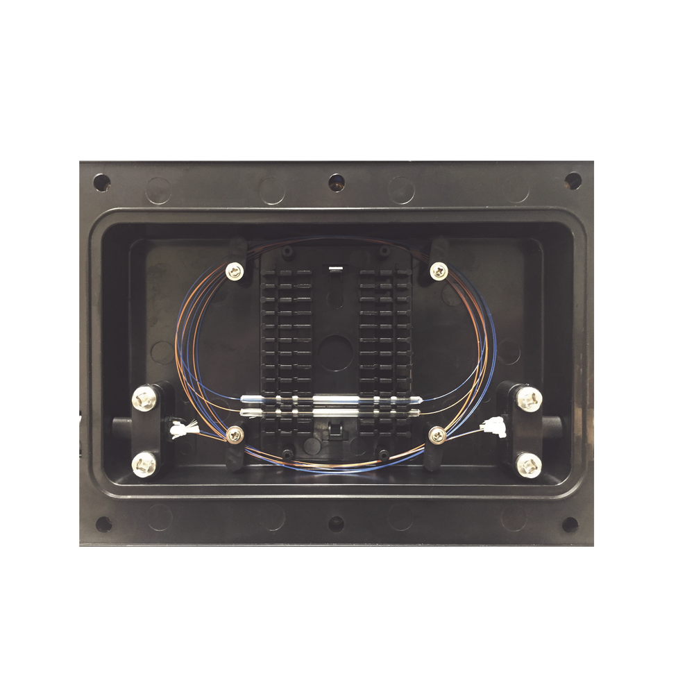 Admite un total de 12 empalmes por fusión y 2 empalmes mecánicos que se colocan de forma segura dentro del cierre con protección al ingreso IP68. El DFE100 se puede enterrar permanentemente o montarse en el lateral de un edificio.