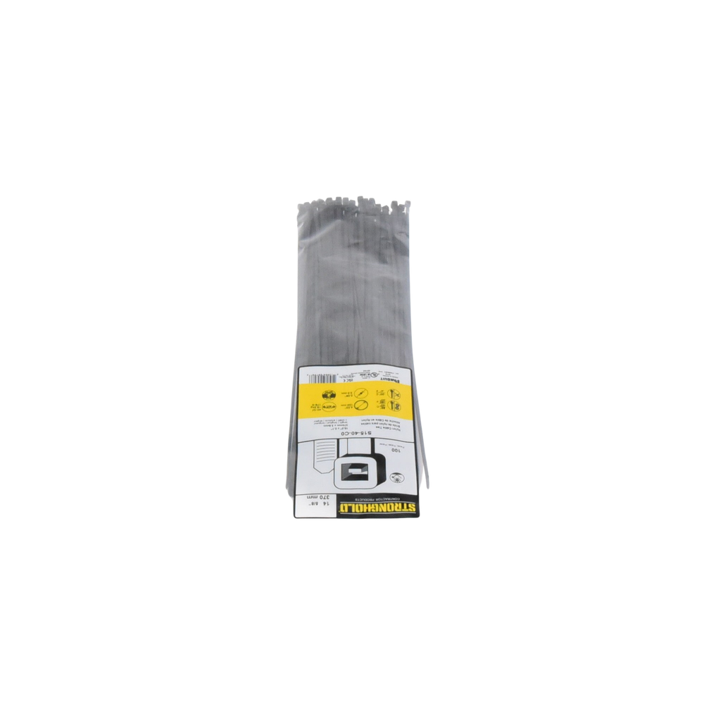 Cincho de Nylon 6.6 StrongHold™, 370mm largo x 3.6mm ancho, Color Negro, Exterior Resistente a Rayos UV, Paquete de 100pz