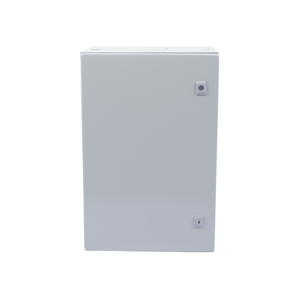 Gabinete de Acero IP66 Uso en Intemperie (400 x 600 x 250 mm) con Placa Trasera Interior Metálica y Compuerta Inferior Atornillable (Incluye Chapa y Llave T).