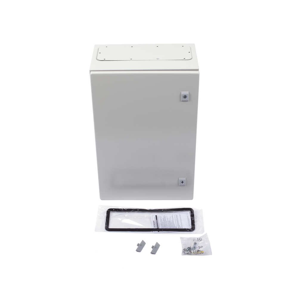 Gabinete de acero para uso en aplicaciones en exterior como postes, torres de telecomunicación o pared donde no se cuente con protección contra lluvia o polvo excesivo.