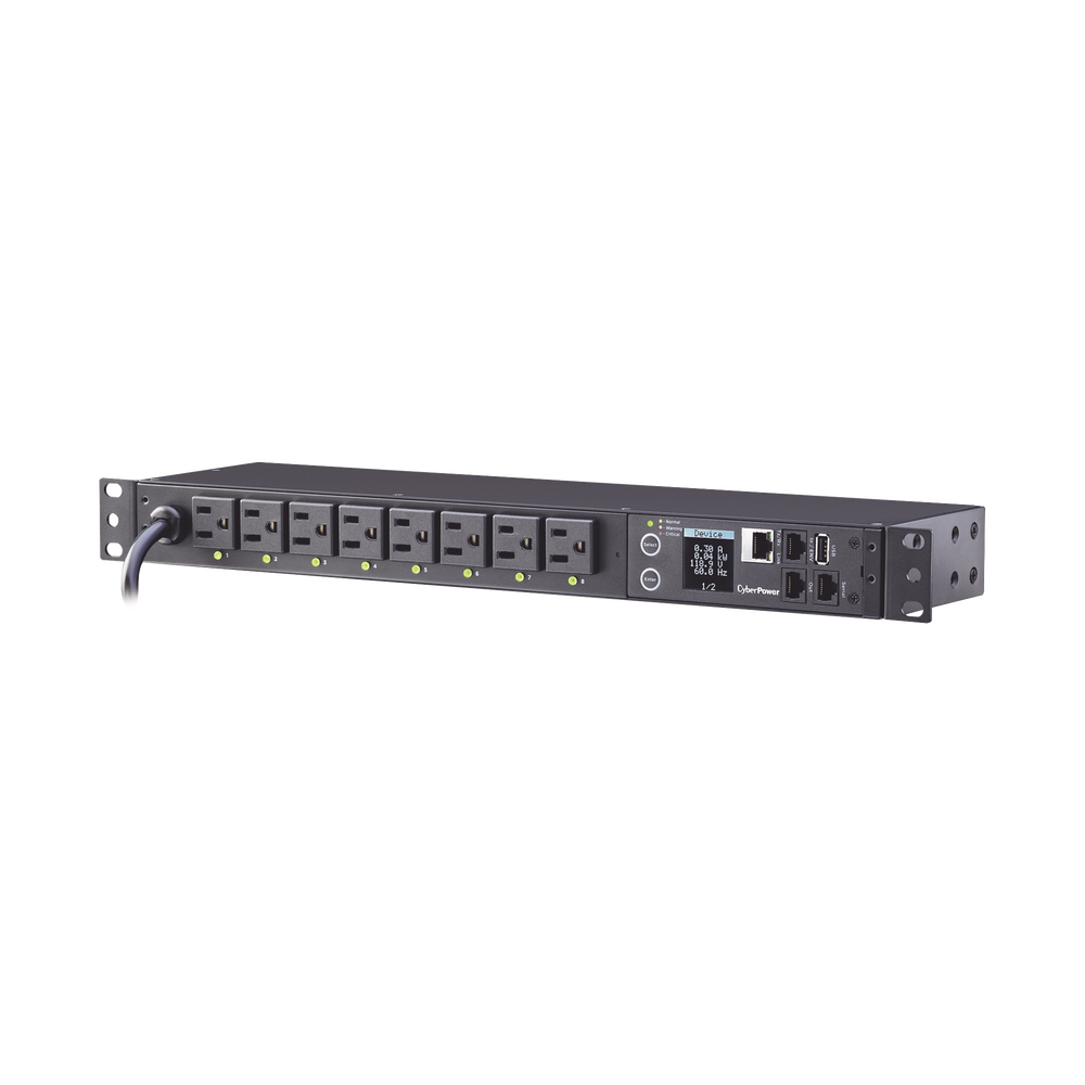 PDU Switchable por Toma, Para Distribución de Energía, Entrada 120 Vca NEMA 5-15P, Con 8 Salidas NEMA 5-15R, Horizontal 19in, 1UR
