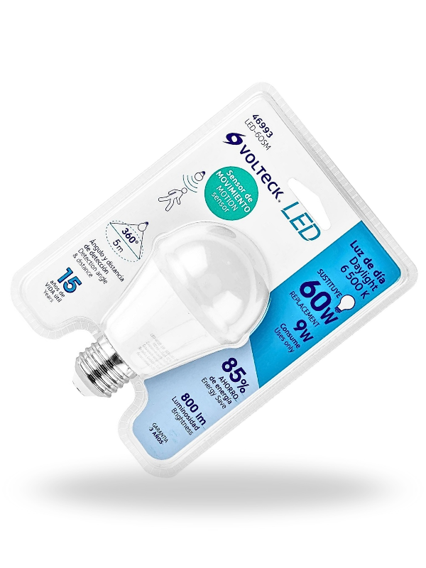 Volteck LED-60SM | Lámpara LED tipo bulbo A19 9 W con sensor de movimiento