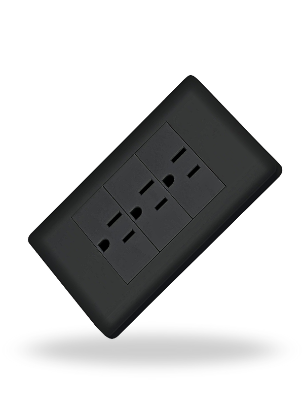 Volteck PA-COTR-LN | Placa armada negra con 3 contactos 2 polos + tierra, línea Lisboa